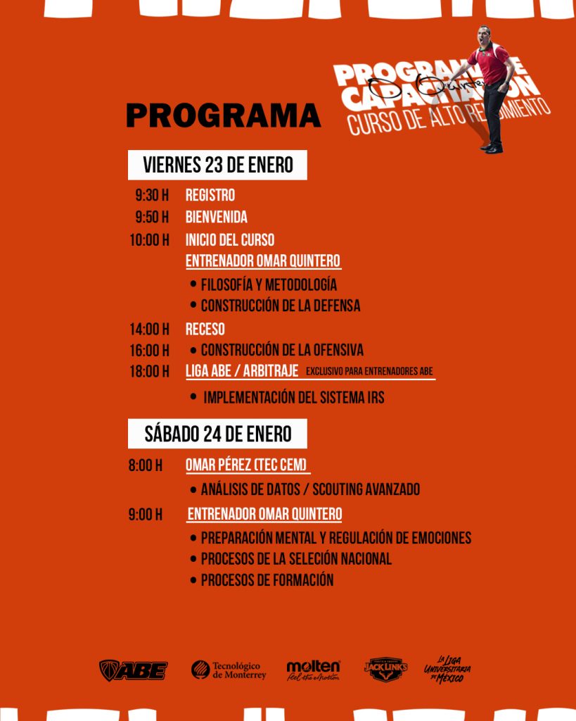 La Asociación de Basquetbol Estudiantil (ABE) arrancará sus actividades de formación este 2026 con un curso de alto rendimiento en el Tecnológico de Monterrey Campus Puebla. La capacitación será encabezada por Omar Quintero Pereda, actual entrenador de la Selección Nacional de México y figura histórica del basquetbol nacional.